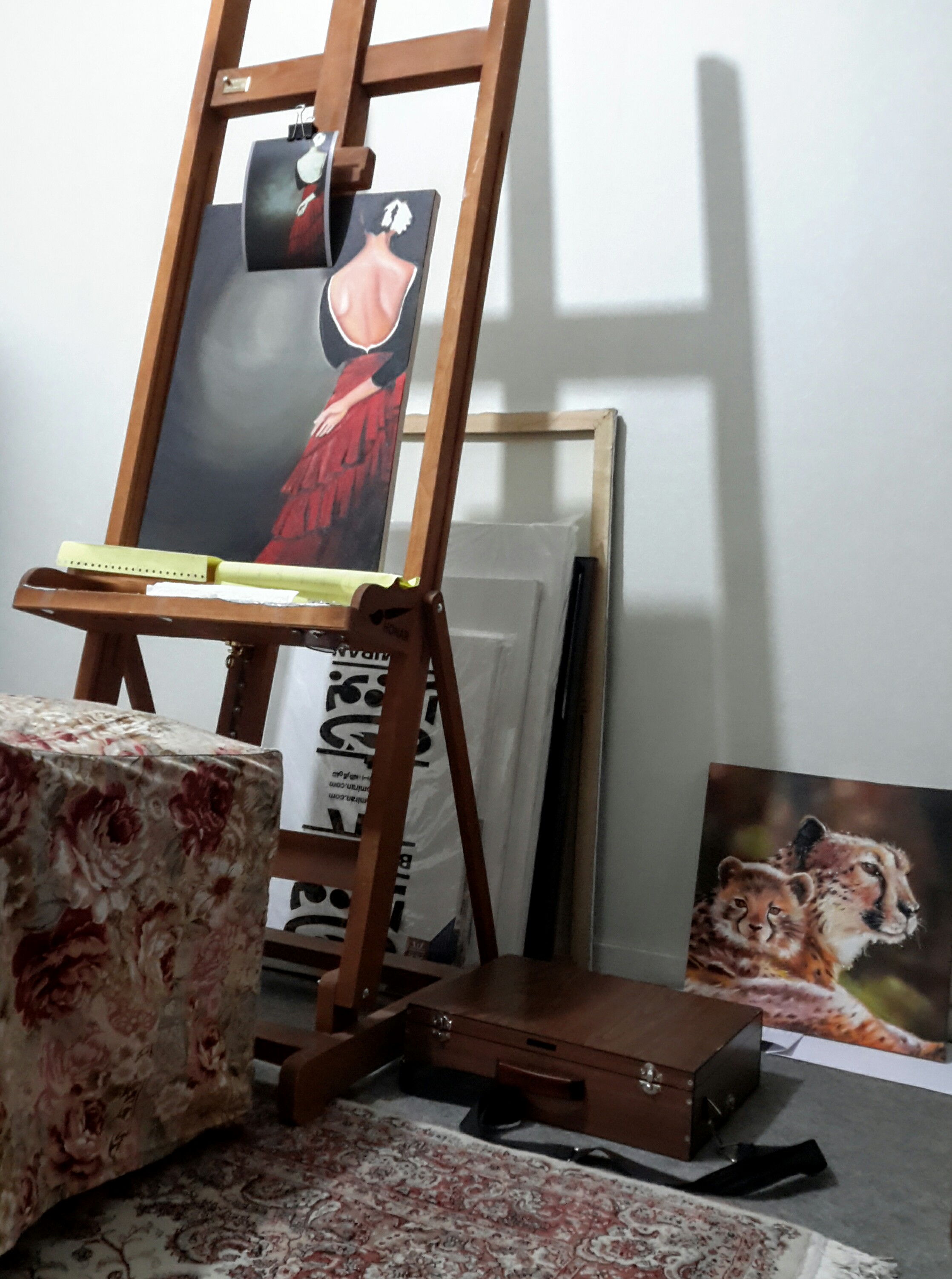 تو این مدت، تابلوم را برای نمایشگاه سوئد تمام کردم و فرستادم. افتتاحیه نمایشگاه همین جمعه ای که گذشت بود، و الان در شهر گوتنبرگ در حال انجامه.